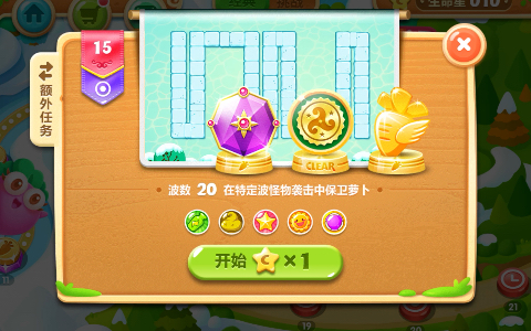 完成额外任务是获取水晶萝卜的关键。需提前了解各关卡任务要求,如P1使用手电筒消灭100个罐子,P3用瓶子炮击杀100个小怪等。部分任务存在冲突,需分多次完成,例如P7需先通关再单独挑战月亮塔限制任务。任务条件通常与时间、炮塔类型或击杀数相关,需在对应阶段主动调整策略。最终检查点需确认三项任务状态,未完成时可使用道具补救或重新挑战。